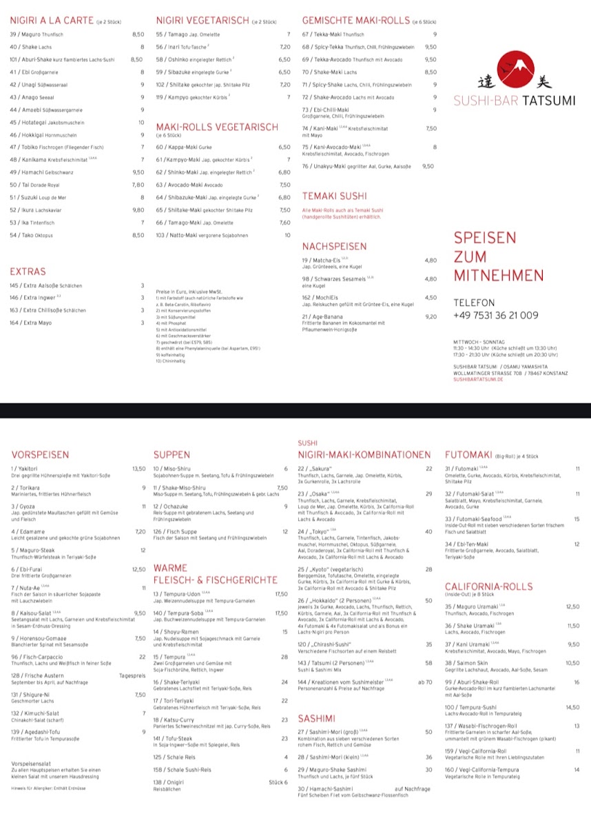 Restaurant Tatsumi Menu