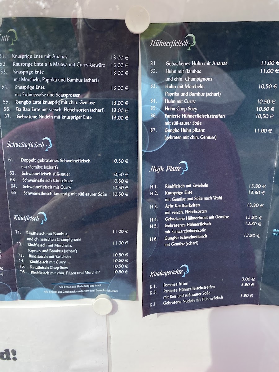 The menu includes fresh sushi and crisp vegetable dishes that make for light, refreshing starters or a casual lunch. Heartier options, like gebratene Entenbrust (fried duck breast) and tender lamb, add satisfying depth for those seeking a more substantial meal. Seasonal salad options provide a crisp, vibrant complement to the richer dishes, while the dessert selection—featuring treats such as gebackene Banane (fried banana) and vanilla ice cream—offers a gentle finish.